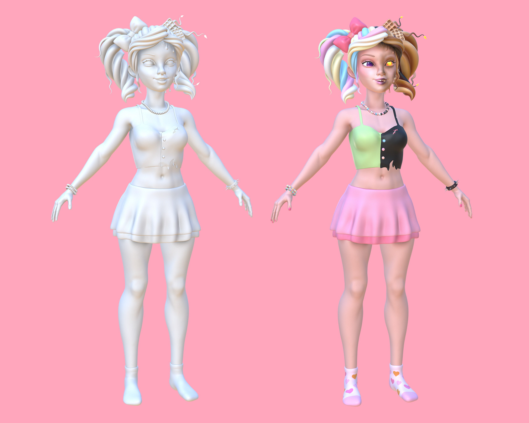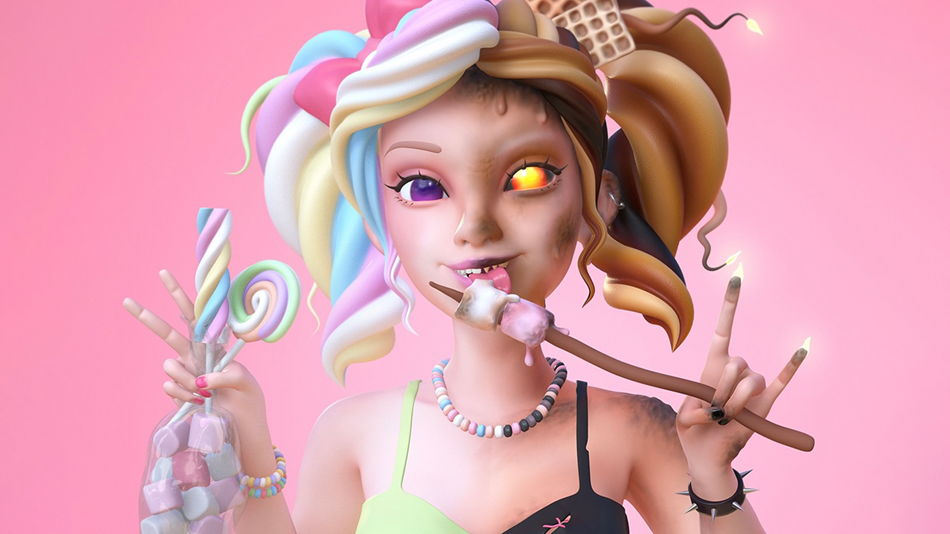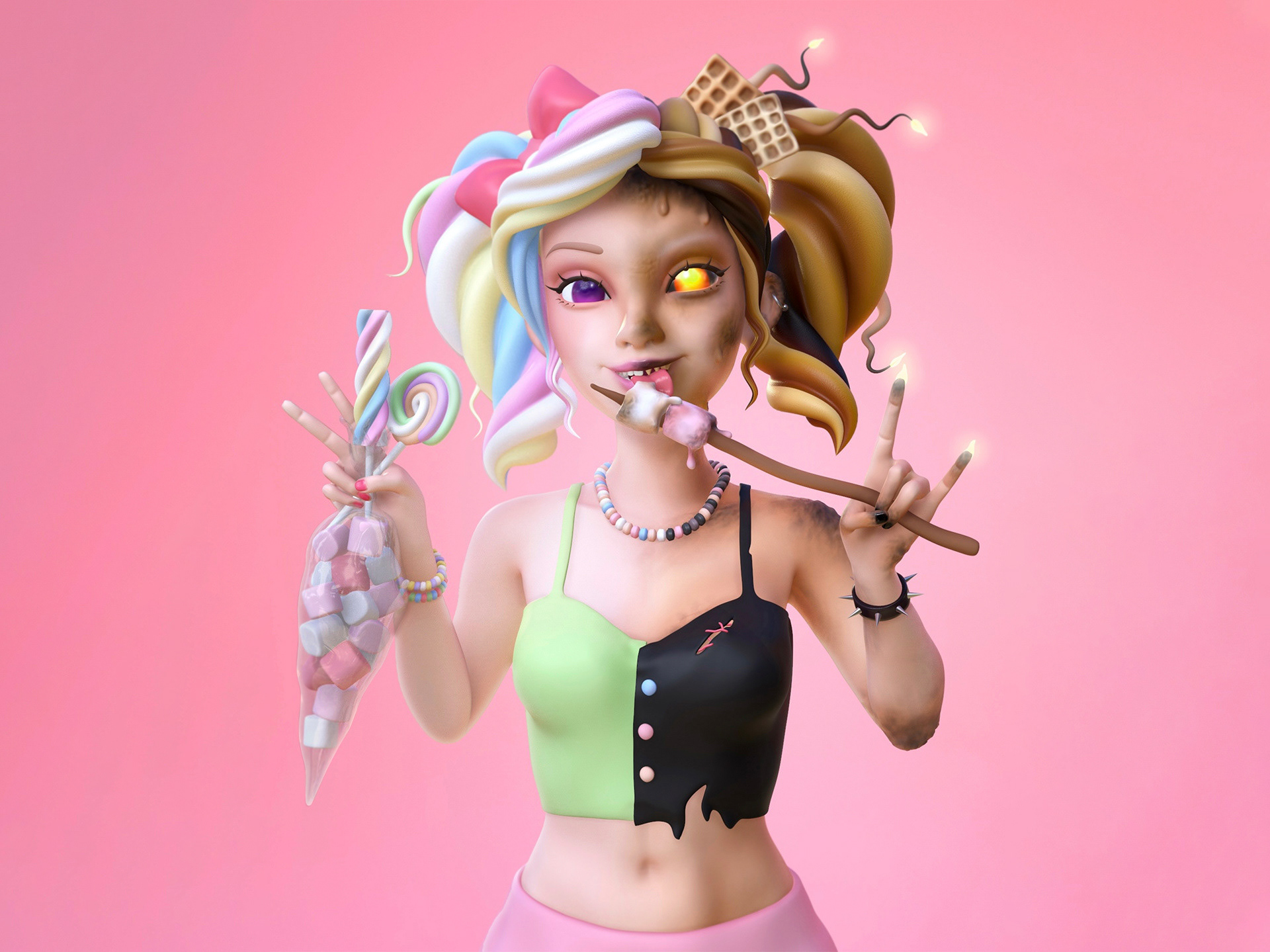 The theme inspired me to create a character that embodies the two vibes of a marshmallow, shapeshifting between them. One half is soft, sweet, and fluffy, while the other melts into a dark, evil, toasted form. The design mixes cute and creepy, showing transformation in a playful way.